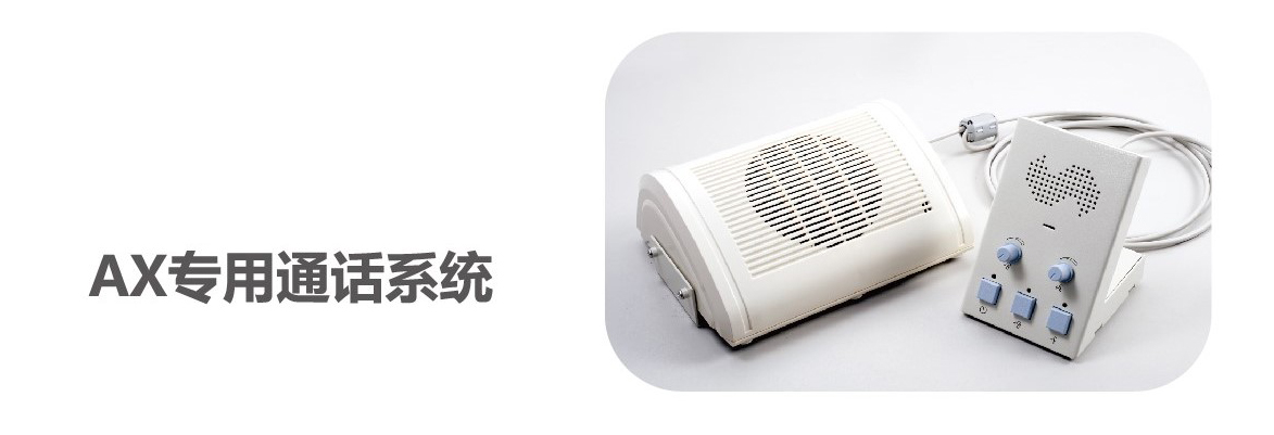 AX专用通话系统是一种用于X-Ray成像设备中的音频通讯系统,作为一个相对独立的功能子系统承担着与语音交流有关的全部功能,系统操作时操作者与患者可以进行语言交流,也可以向患者提供特定的语音信号或音乐 91抖音免费观看,该系统还具有扫描室内监听和患者紧急呼救功能。