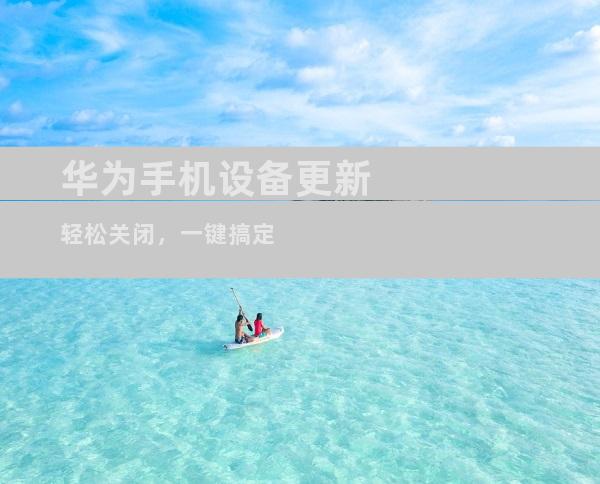 华为手机设备更新轻松关闭,一键搞定!本文全面阐述了华为手机设备更新关闭的6个关键方面,通过详细说明和便捷指南,帮助用户轻松管理设备更新,尽享流畅的使用体验。1. 及时更新,保障设备安全华为手机设备更新至关重要,它不仅引入了新功能和改进,更能提升设备的安全性。更新会 修复已知漏洞和安全威胁,保护设备免受恶意软件和网络攻击。及时更新还能提高设备的稳定性和性能,带来更佳的使用体验。2. 一键关闭自动更新,随心掌控华为手机提供了灵活的更新设置,用户可根据自身需要选择关闭自动更新。通过打开“设置”